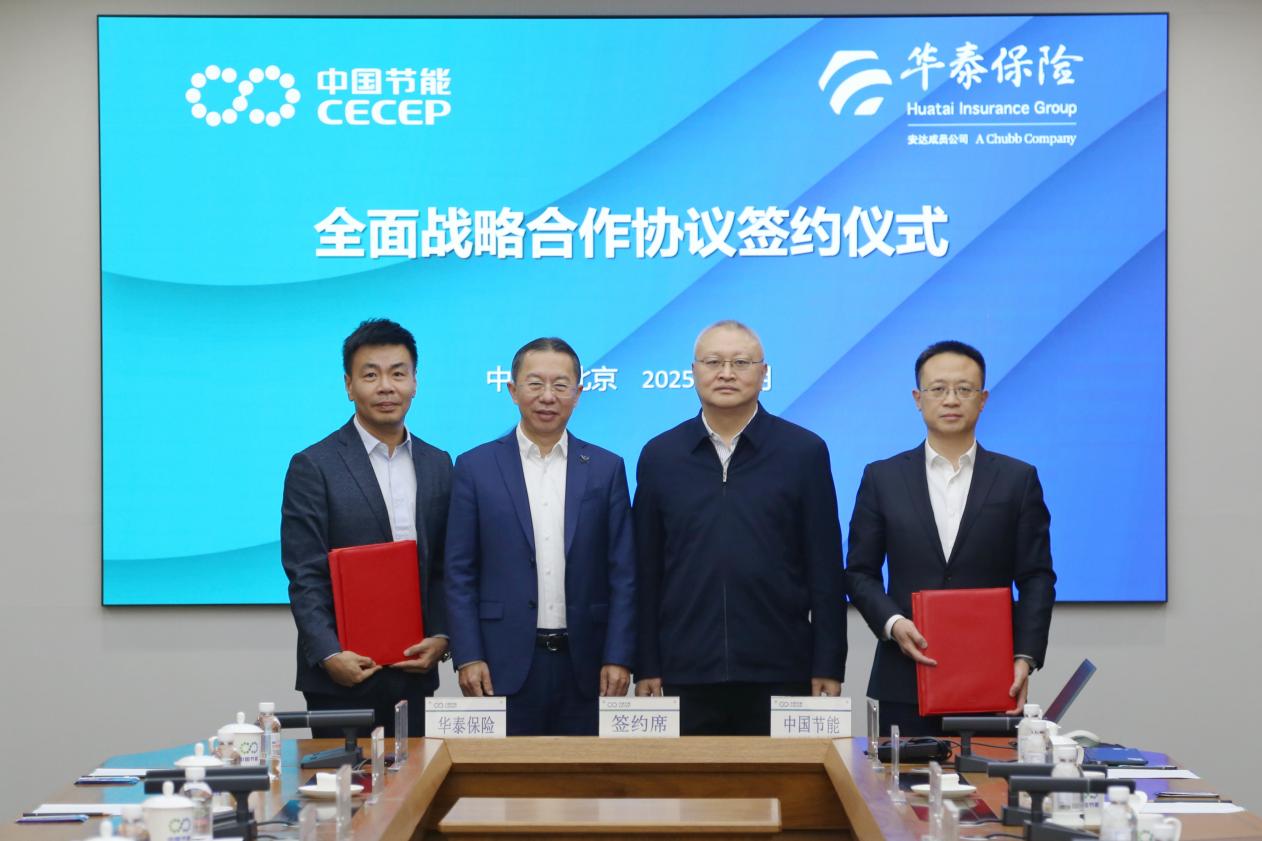 11月25日,中国节能与华泰保险集团股份有限公司在节能大厦签署战略合作协议。中国节能党委常委、总会计师朱庆锋与华泰保险集团资深副总经理兼首席投资官杨平举行工作会谈并见证签约。